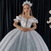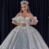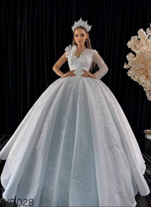 A wonderful bridal dress featuring an elegant and beautiful design and exquisite details. The dress comes in a beautiful olive color that gives it a touch of elegance and luxury. The fabric used in its manufacture is of high quality and feels soft and comfortable when wearing.