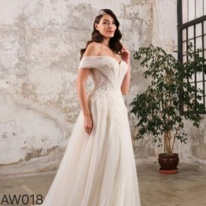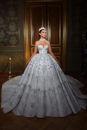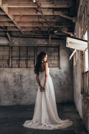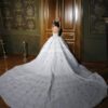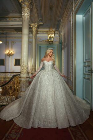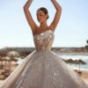 volol is a traditionally elegant ball gown that is as timeless and classic as it gets. Made from crisp Mikado fabric in a soft ivory shade, it’s an understated shape that flatters taller figures. The pleated bodice helps to define the waistline
