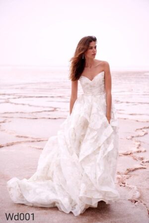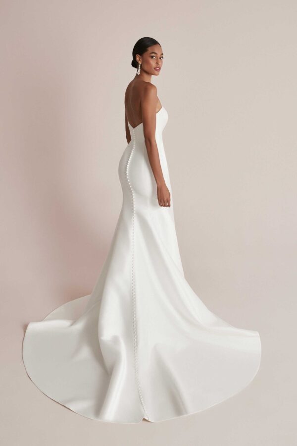 volol is a traditionally elegant ball gown that is as timeless and classic as it gets. Made from crisp Mikado fabric in a soft ivory shade, it’s an understated shape that flatters taller figures. The pleated bodice helps to define the waistline