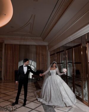 A wedding dress characterized by elegance and high luxury. It is designed using luxurious fabrics and sophisticated details to give the bride a wonderful and special touch on her wedding day.